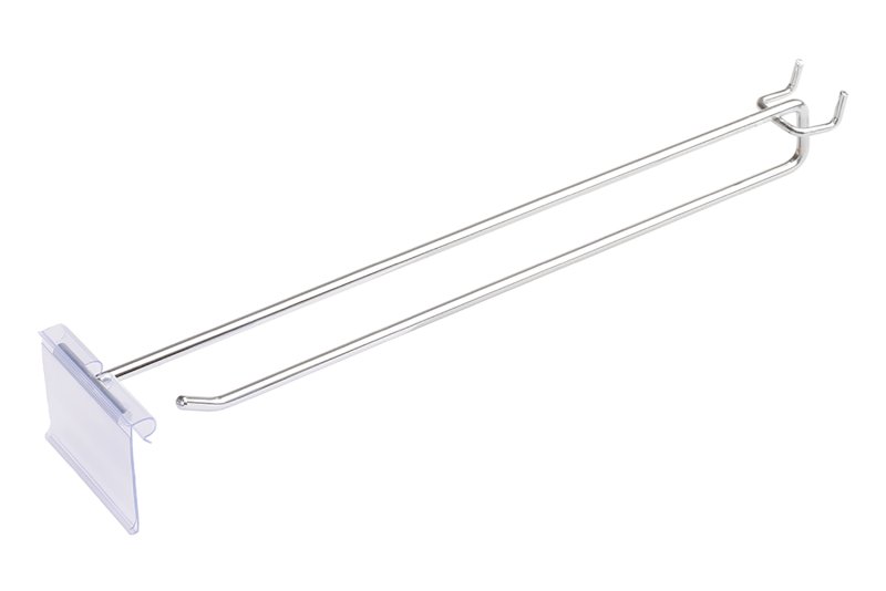 prezentační háček 30 cm kompatibilní se systémem SU 5 OZAP hrazda s transparentní visačkou 6 x 5 cm pro popis a cenu zboží rozteč úchytných háčků 25 mm