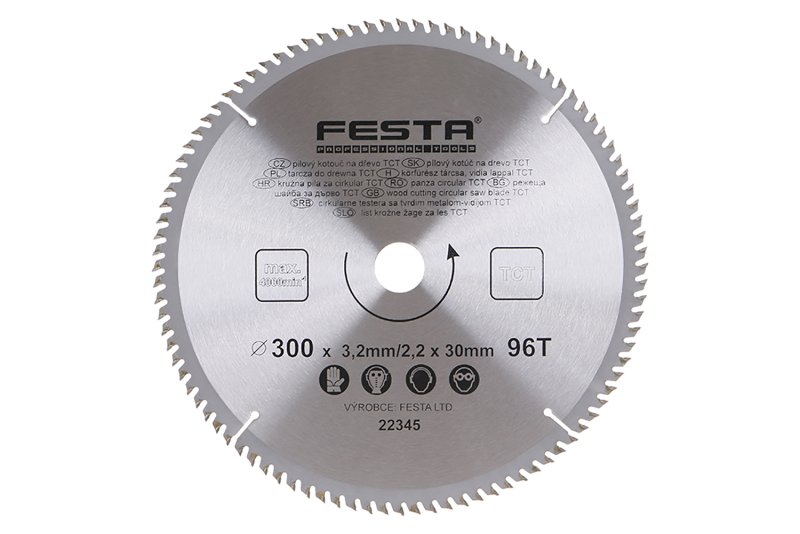 pilový kotouč s SK plátky tělo kotouče z kvalitní uhlíkové oceli (HRC:40) břitové destičky SK ( slinutý karbid ) tvrdost HRA 90 střídavý zub - pozitivní úhel čela 15° zářezy po 90° do vnitřní části chrání před přehřátím a deformací kotouče specifikace uvedeny na těle kotouče