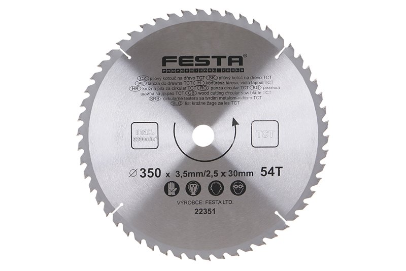 pilový kotouč s SK plátky tělo kotouče z kvalitní uhlíkové oceli (HRC:40) břitové destičky SK ( slinutý karbid ) tvrdost HRA 90 střídavý zub - pozitivní úhel čela 15° zářezy po 90° do vnitřní části chrání před přehřátím a deformací kotouče specifikace uvedeny na těle kotouče