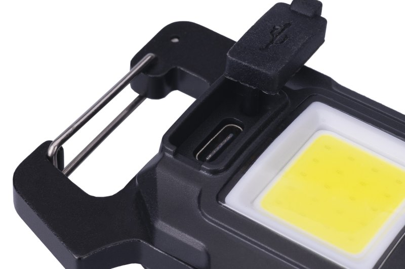nabíjecí praktická mini svítilna s karabinou a dvěma COB LED svítilnami s velkým světelným tokem 750 lm Li-pol nabíjecí baterie 3,7 V / 0,45 Ah, USB-C nabíjení - kabel je součástí balení díky použitému modrtnímu typu LED COB diod, dosahuje svítilna i při malých rozměrech vysokeho světelného toku s dosaahem světla až na 40 metrů svítilna ukrývá v malem těle velké možnosti - karabina, silný magnet, výklopný stojánek, závit 1/4" pro montáž na stativ, otvírák na lahve použité materiály hliník a ABS plast, krytí IP44 široká čkála využití - outdoorové aktivity, stanování, rybaření, pro motorkáře, cyklisty, v práci i domácnosti
