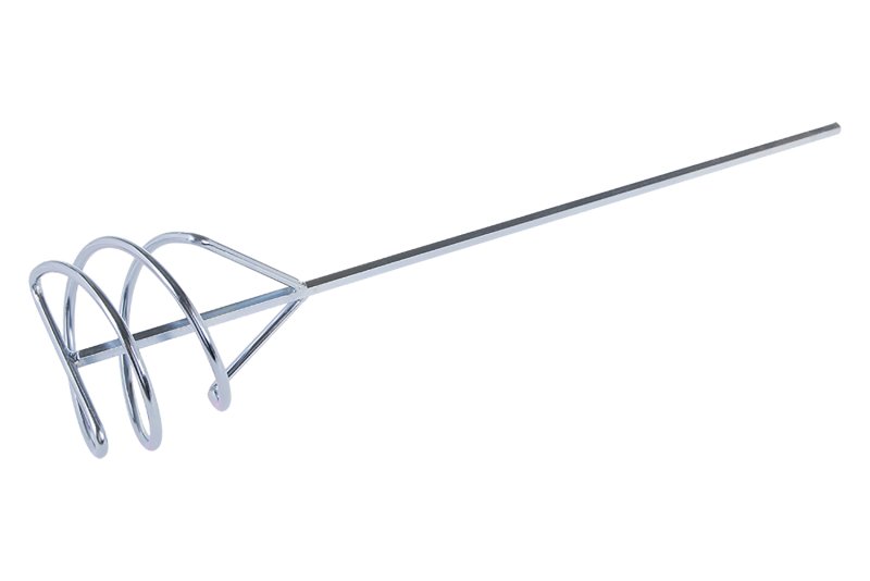 Míchadlo spirála - drát (metla), pozinkované, rozměr: 100 x 500 mm - šestihran, použití: pro důkladné rozmíchání lepidel na obklady, spárovaných hmot, lepících malt, hotových omítek, mazaniny, stěrkovacích hmot, vyrovnávacích hmot.