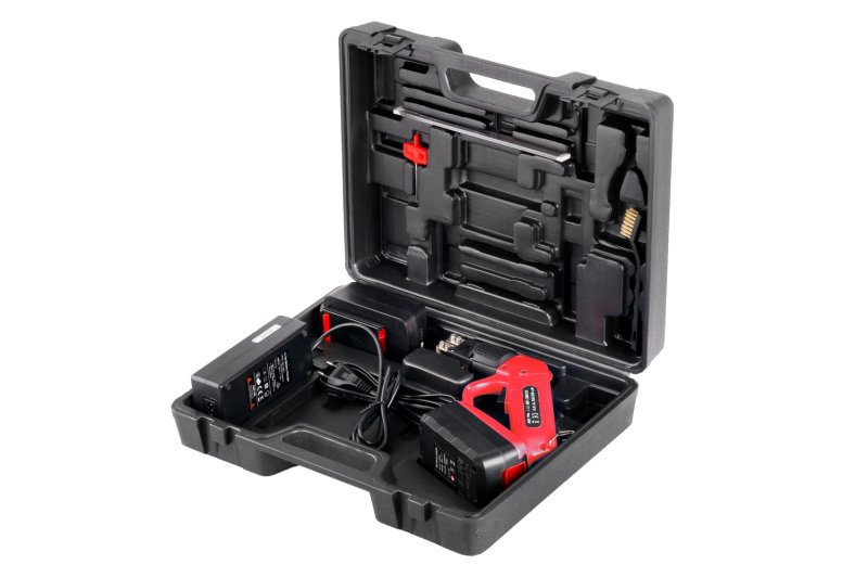 akumulátorová řezačka na polystyren v plastovém kufru včetně 2 baterií, nabíječky a montážního i čistícího příslušenství lehká akumulátorová řezačka vhodná na řezání - tvarování polystyrenu nebo plastů s tenkým nožem 20 cm,