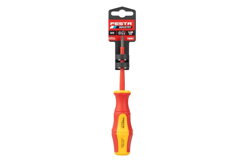 Šroubovák FESTA má certifikaci elektro VDE 1000 V, EN IEC 60900:2018, kovový dřík je vyroben z velmi kvalitní chromvanadiové oceli, kalený hrot je magnetický, kombinace polypropylenu a pryže na ergonomicky tvarované rukojeti zaručuje výborné antiskluzové vlastnosti a dobrou odolnost vůči mazadlům a chemikáliím.