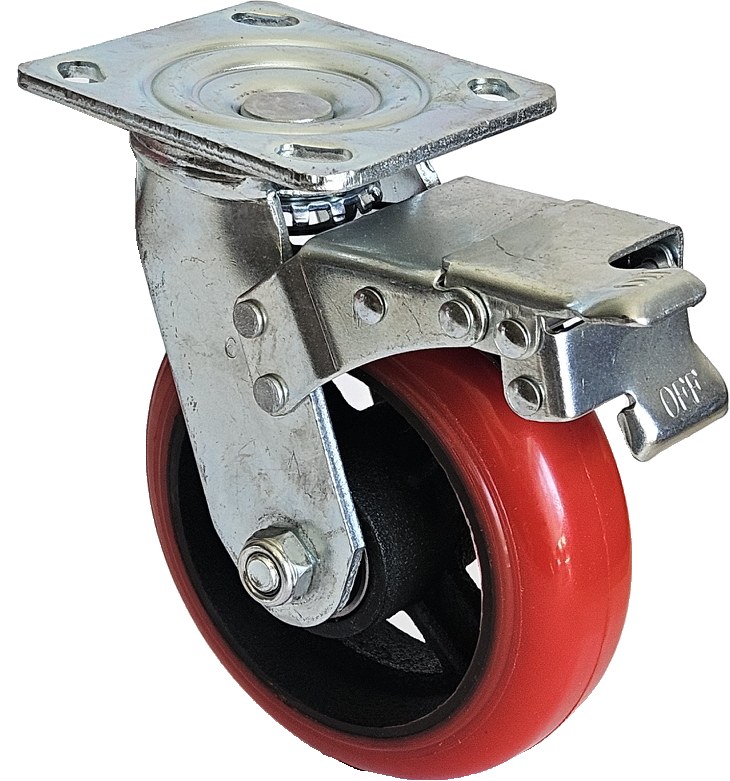 kolo: litina s červeným polyuretan na kuličkovém ložisku