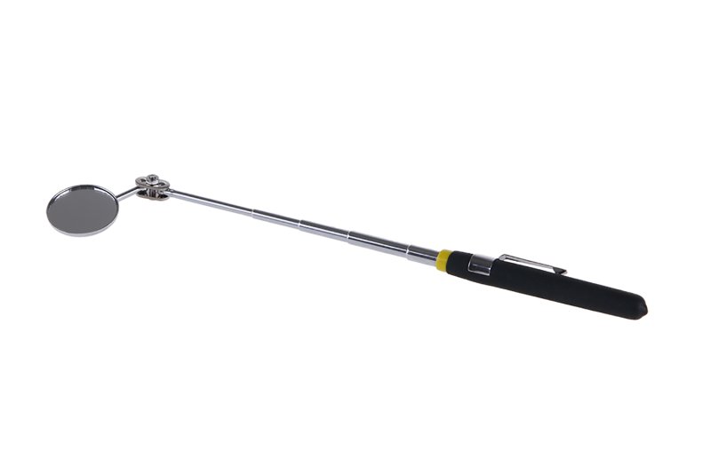 Teleskopické inspekční zrcátko s kloubem, snadné nahlížení do nepřístupných míst, variabilní nastaveníá zrcátka-30 mm díky otočnému kloubu, délka výsuvu od 170 - 495 mm. Pogumovaná rukojeť, klip k uchycení na oděv.